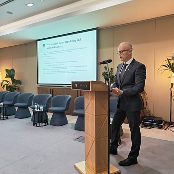 Predsednik Notarske zbornice Slovenije, dr. Bojan Podgoršek, je predstavil vlogo notarjev v slovenskem gospodarskem pravu in sodeloval v panelni razpravi, kjer je bila izpostavljena pomembna vloga notarjev kot enega najpomembnejših stebrov preventivnega pravosodja.